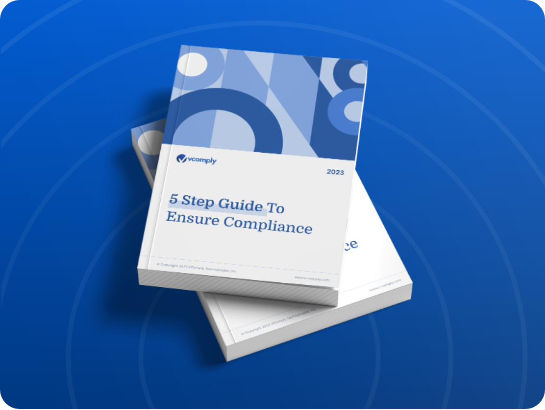 VComply’s e-book, “5-Step Guide to Ensure Compliance”, is a practical guide to help you assess your present compliance posture. In it you’ll learn the essential steps to creating an effective compliance program and ensuring regulatory compliance in your organization.