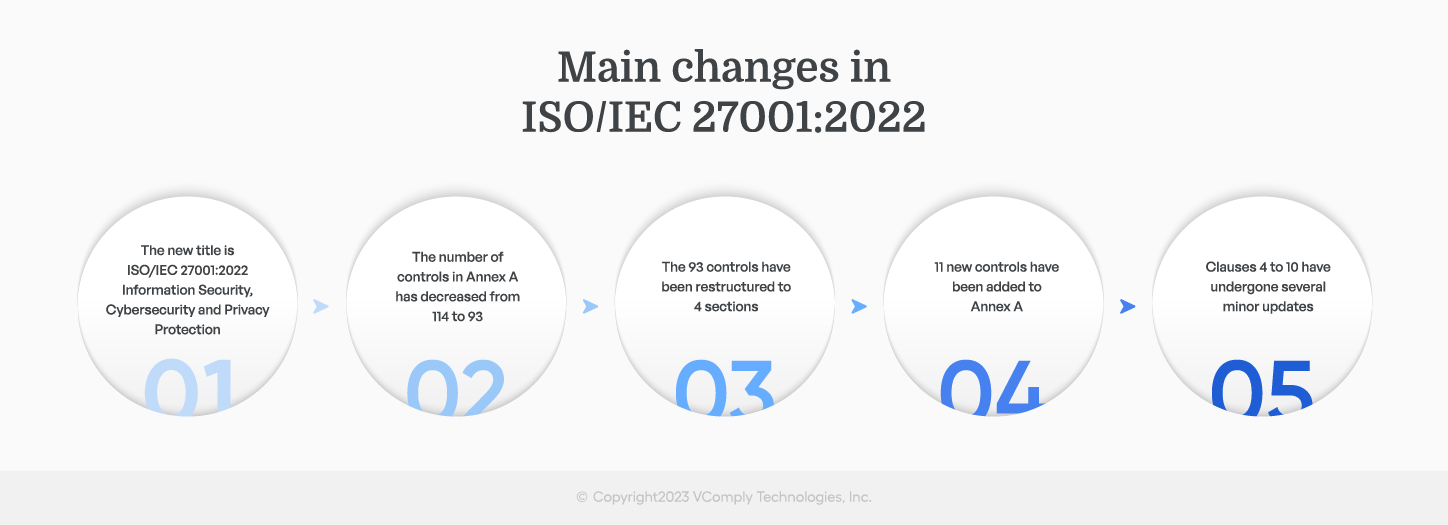 Key changes in Annex A controls for ISO/IEC 27001: 2022 include: