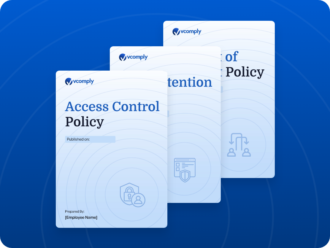 Eliminate the arduous task of manually crafting policy documents, as VComply offers its repository of policy templates to aid businesses of various sizes and industries. With these templates, organizations can save time, ensure adherence to compliance, and promote streamlined and sophisticated business operations.