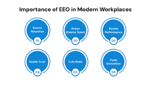 When an EEO policy is in place, it assures employees that they’ll be valued for their skills and contributions. This level of commitment from employers creates a culture where people feel they belong. In return, organizations experience better employee morale, reduced turnover, and a stronger reputation, both internally and in the market.