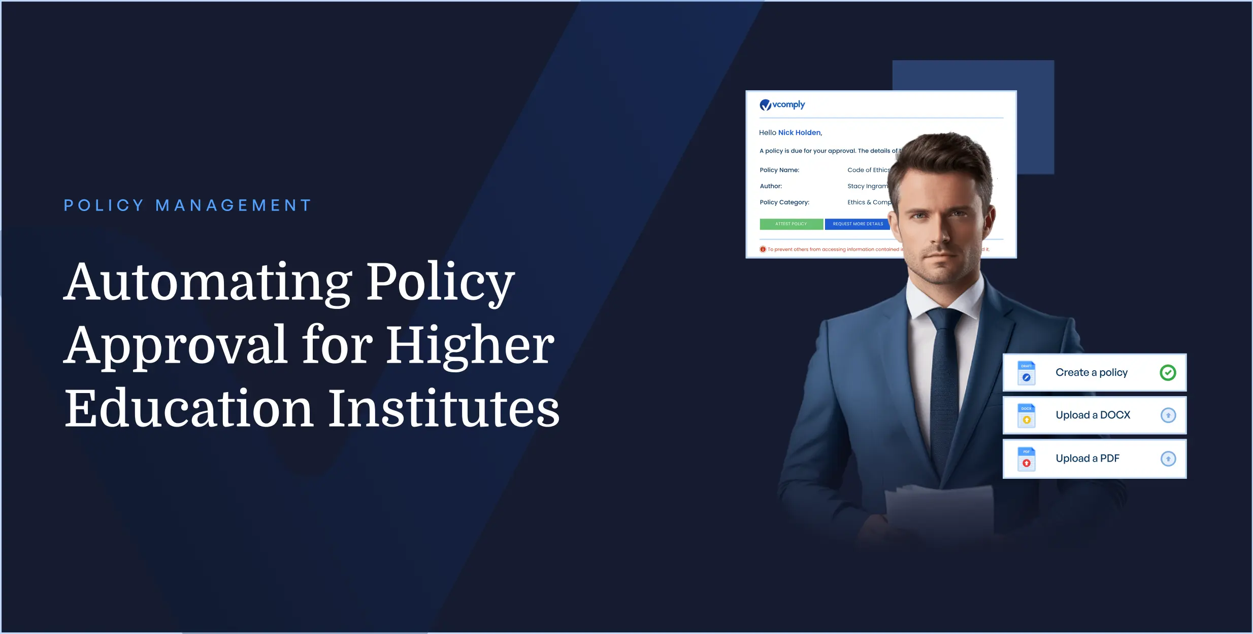 Higher education institutes require efficient policy management to ensure compliance with regulations and accreditation requirements. Policies form the foundation of these institutions.